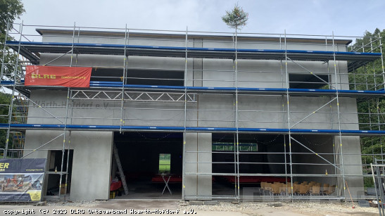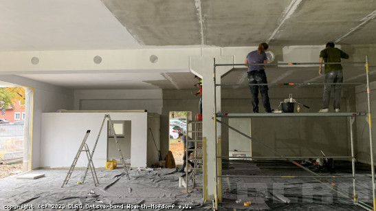 Oktober 2023: Das Gerüst um das Gebäude wurde abgebaut und die Türen und Tore eingebaut. Eine motivierte Truppe von uns hat die Fahrzeughalle weiß getrichen, wodurch die Halle gleich viel heller war. In der letzten Oktoberwoche waren dann alle Außenarbeiten abgeschlossen und es hieß "Hülle dicht"! ... Mehr erfahren