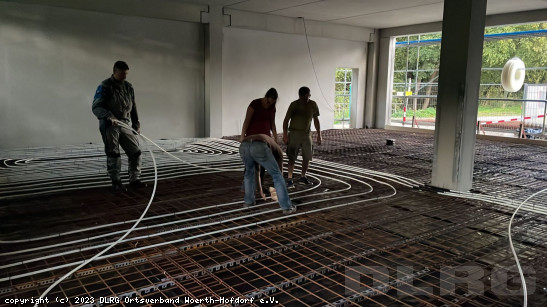September 2023: In Eigenleistung verlegen wir die Betonkernaktivierung in der Fahrzeughalle und bringen den DLRG-Schriftzug am Gebäude an. Die Fa. Mibach baut die endfertige Industriebodenplatte ein. Bei der ersten Vorstandssitzung nach der Sommerpause beträgt die Finanzierungslücke noch knapp 25.000 Euro. Endspurt! Innerhalb eines Jahres hat unser Verein 210.000 Euro an Spenden und Zuschüssen gesammelt und bei verschiedenen Veranstaltungen zusätzliche Einnahmen generiert. Mühsam ernährt sich das Eichhörnchen. Dafür ein großes DANKE an alle, die einen Beitrag zu unserer neuen Heimat geleistet haben. ... Mehr erfahren