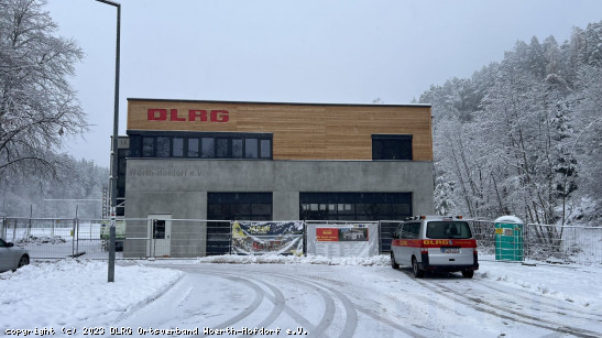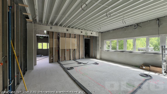 Dezember 2024: Der Baufortschritt geht in die finale Phase! Im Dezember wird die Küche geliefert, die an eine Gastronomie-Küche angelehnt ist und uns erlaubt, auch bei größeren Veranstaltungen selbst zu kochen. In der Fahrzeughalle werden fleißig Regale für die Ausrüstung montiert und die Werkstatt wird eingerichtet. Im Obergeschoss gehen die Arbeiten im Aufenthaltsbereich weiter, wo wir uns eine kleine Bartheke einrichten. Kurz vor Weihnachten werden dann noch die Möbel für die Schulungsräume geliefert. Das Gebäude ist nun innen bis auf kleinere Arbeiten weitestgehend fertig und wir können das neue Jahr 2025 in unserem neuen Ausbildungs- und Wasserrettungszentrum starten! ... Mehr erfahren