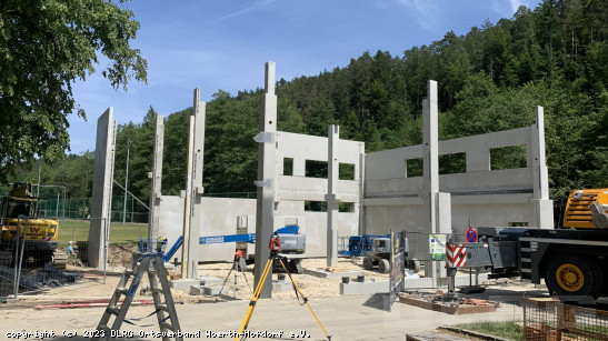 Juni 2023: Innerhalb eines Monats werden die Betonfertigteile angeliefert und montiert. Ein emotionaler Moment für alle Beteiligten, denn der Traum vom eigenen Vereinsheim ist plötzlich Wirklichkeit und anfassbar. ... Mehr erfahren
